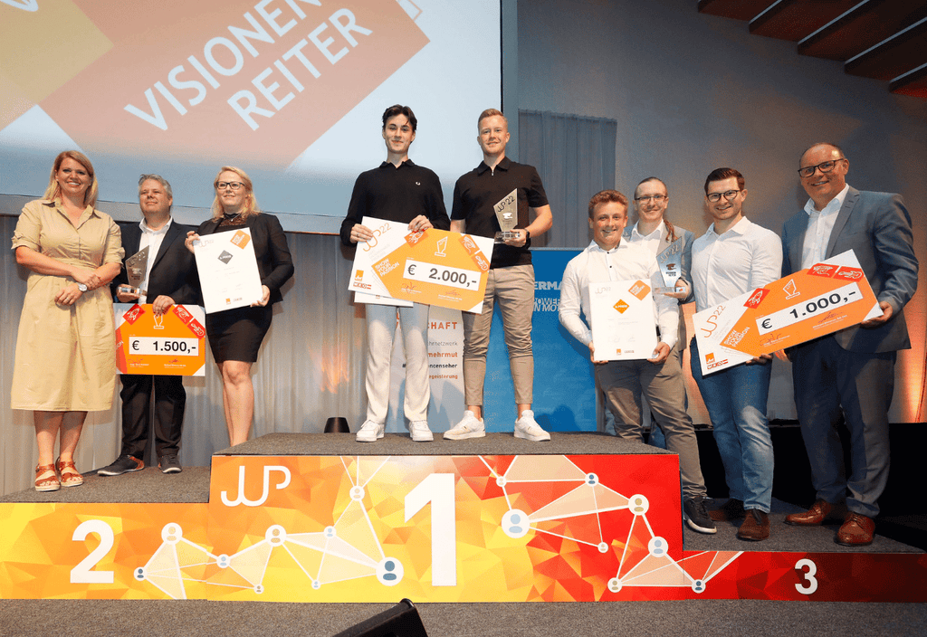 Beim Jungunternehmerpreis 2022 der WKO belegt myHarry den ersten Platz in der Kategorie "Visionenreiter". Diese zeichnet Unternehmen aus, die auf digitale Lösungen setzen und damit die Weichen für die Zukunft stellen.