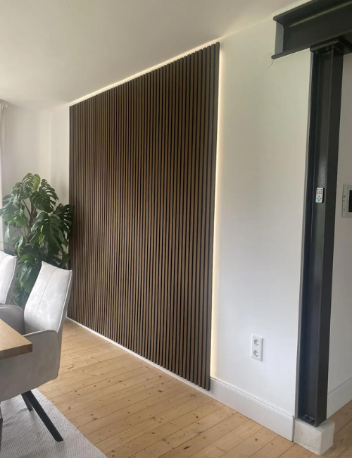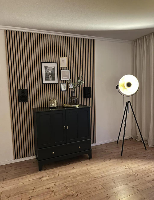 Die Anordnung der Leisten in gleichmäßigen Abständen auf dem Filzträger verbessert die Raumakustik. So werden vor allem mittlere und hohe Frequenzen reduziert, während der Akustikfilz den restlichen Schall absorbiert. Das bedeutet für dich weniger Nachhall, ein klares Klangbild und ein entspanntes Raumklima. Du kannst die Akustik in deinem Raum um bis zu 50 % verbessern und eine angenehmere, ruhigere Klangumgebung schaffen.