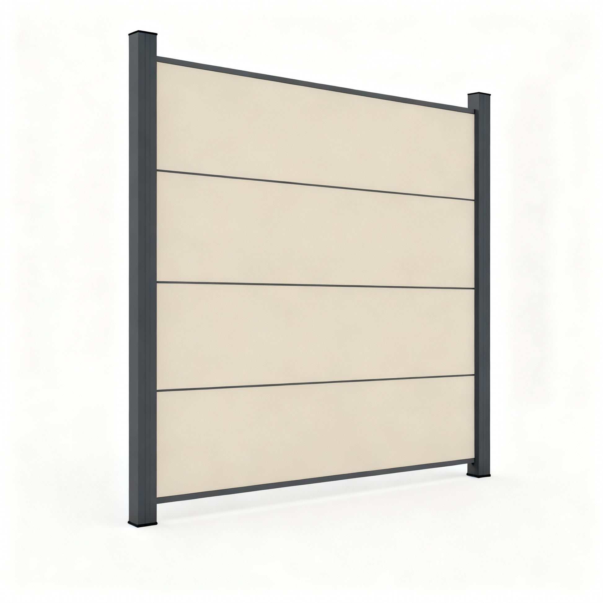 Das Aluminium-Paneel besticht durch modernes Design, hohe Stabilität und eine elegante anthrazitfarbene Oberfläche. Es eignet sich ideal als einzelne Sichtschutzfläche oder als Erweiterung bestehender Zaunsysteme.