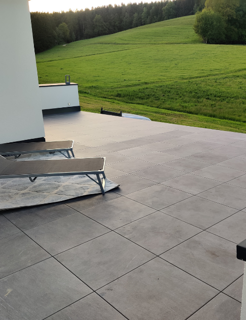 Unsere Feinsteinzeug-Terrassenplatten trotzen den Elementen und behalten ihre Schönheit über Jahre hinweg, ohne zu verblassen oder zu beschädigen.
